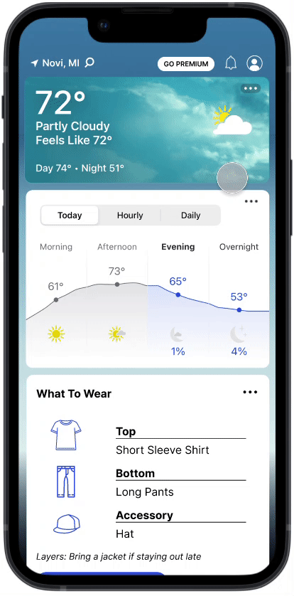 I’d like to explore ways to help users better gauge how to dress based on the weather by adding a “What To Wear” feature so that users can easily determine how to dress for the day.